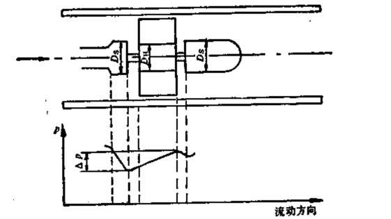當(dāng)流體通過渦輪時(shí),對渦輪產(chǎn)生軸向推力,使鈾軸承的摩擦力矩增大,加速鈾軸承的磨損。為了消除軸向力,在結(jié)構(gòu)上應(yīng)采取水力平衡措施。該方法的原理如圖3-3所示。由于渦輪處的直徑DH略小于前后支撐處的直徑Ds,渦輪截面內(nèi)的流動(dòng)截面擴(kuò)大,速度降低,靜水壓力P升高。P的靜水壓力將起作用抵消部分軸向推力。