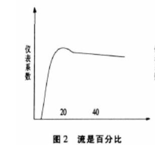 的特性可以看出。當被測介質(zhì)流體流量小于渦輪流量檔測量范圍的15%時,特性曲線向左下方下垂。當大于15%時,其特性曲線幾乎是一條水平直線(見圖2)。選擇渦輪流量計口徑時,介質(zhì)的工作流量應為流量計測量值的15%~70%。當被測介質(zhì)流量低于所選流量計量程的15%時,介質(zhì)流體在管道中以層流狀態(tài)緩慢流動,流量計的測量線性惡化,難以達到要求的測量精度.當介質(zhì)條件下的流量大于所選流量計測量規(guī)范的70%時,渦輪流量計轉(zhuǎn)速會發(fā)生較大變化,加速軸承和支架的磨損,影響渦輪流量計的使用壽命。在實際生產(chǎn)中,我們的客戶曾經(jīng)有一臺DN25燃氣輪機流量計。由于口徑小,被測介質(zhì)流量在渦輪流量計測量范圍的(100~110)%之間。連續(xù)運行20天后,拆下球面軸承發(fā)現(xiàn)磨損嚴重,經(jīng)驗證其示值誤差為-6.6%。被測介質(zhì)的工作流量在流量計量程的15%~70%之間,既能保證測量精度,又能保證渦輪流量計長期正常運行。