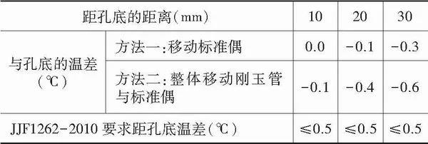 根據(jù)表2分析,本實(shí)驗(yàn)室驗(yàn)證爐安裝等溫塊后,距孔底3mm處滿足方法2標(biāo)準(zhǔn)要求。 一般來說,檢定爐溫度場基本規(guī)范的要求不是主要影響因素。