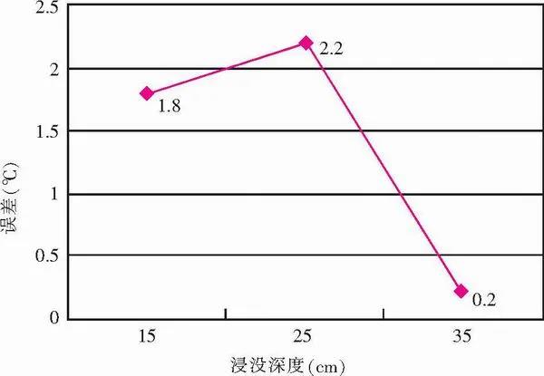 將熱電偶浸入3℃恒溫油槽中不同深度,實(shí)驗(yàn)結(jié)果如表5所示。