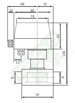 機械式流量開關(guān)。內(nèi)置彈簧支撐的擋片,當(dāng)流量達到預(yù)制值時,機械結(jié)構(gòu)觸發(fā)微動觸發(fā)開關(guān)。